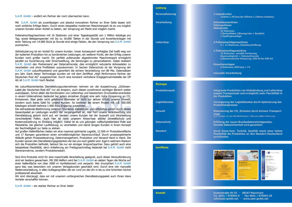 CO REACH - Nürnberg (früher mailingtage)Bis 2013 war die Messe als „mailingtage“ in der Branche bekannt und die größte Messe rund ums das Thema Dialogmarketing in Deutschland.Sowohl Für die Firma S.A.M. wie auch Crossmedia betreute die Agentur 9&vierzig den kompletten Messeauftritt, von der Planung, Kundeneinladung, Werbemittel, Standaufbau bis hin zur OrganiSation.